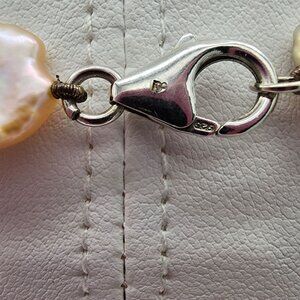 This elegant set features a large Keshi pearl necklace and bracelet, beautifully showcasing natural rainbow hues. The pieces are secured with a 925 sterling silver clasp for a luxe finish.