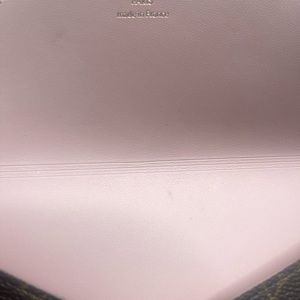 **** lightly used, insert included. Must buy chain. Good hardware has scratches. Wear on corners of bag. Some markings in pink interior.