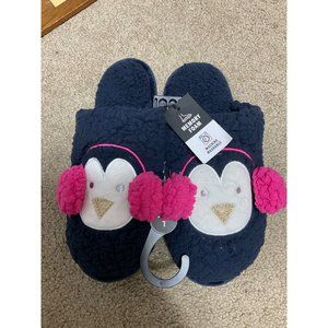 Description: Large L 9-10 Penguin PomPom House Shoes Slippers Blue Pink