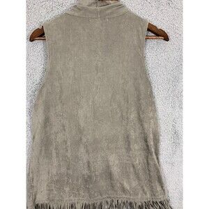 Large (L) Pink Rose Gray Faux Suede Microfiber Fringe Kimono Cardigan Vest