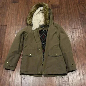 Beautiful Coat, worn a couple times. No rips, tears, stains or flaws noticeable! Absolutely fabulous coat!