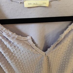 Large Lavender Textured Women's Top Short Sleeve V Neck Minimalist Basic Pastel