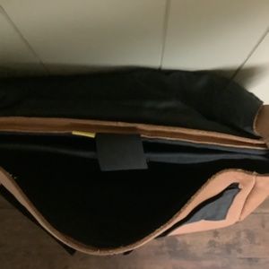 Beautiful Leather laptop/work messenger bag. Rarely used. Organization on front of the bag under flap, open compartment with on zippered pocket. Fully padded compartment for laptop with a Velcro closure. Adjustable strap. Buckle on bottom front for security.
