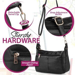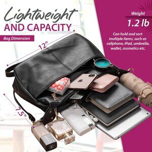 Features: Made from soft water-resistant leather with a smooth polyester lining, this roomy bag features multiple compartments to keep your essentials sorted—think cellphones, iPad, wallet, makeup, and more. Comes with both a long adjustable strap for crossbody wear and a shorter handle for classic arm carry. The gold-tone hardware adds a luxurious touch, with magnetic snaps, zippers, and stainless-steel accents to ensure durability. It’s versatile for travel, work, shopping, or a casual day out.
