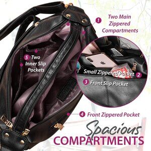 Large Leather Hobo Bag Women Shoulder Crossbody Purse Tote with Multiple Compart