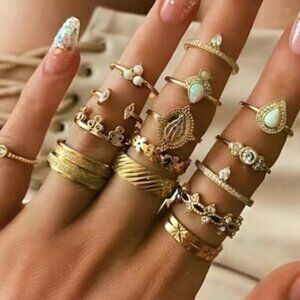Boho, Bohemian, Statement Jewelry, Large Ring, Ring Set, Gold Rings, Costume Jewelry, Cosplay Jewelry