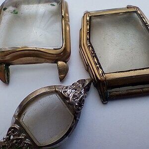 This is a lot of vintage Bulova watch parts in various conditions of disrepair. However, they are all genuine Bulovas, and they are marked on the back.