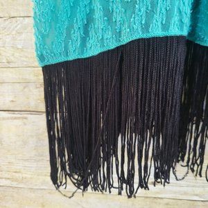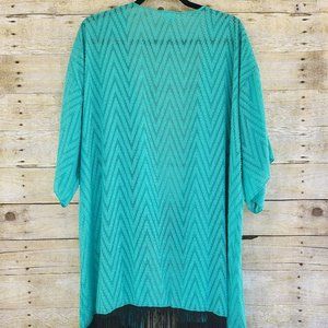 Large LuLaRoe Fringed Monroe 'Kimono' - Textured Mint/Seafoam Green Black Fringe