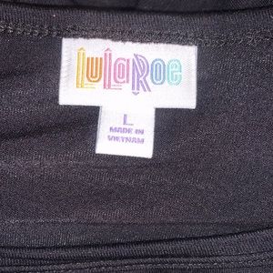 EUC LuLaRoe Randy Size: Large Color: Black Body with Black & White Striped Sleeves Raglan Style 3/4 Sleeve
