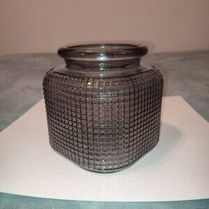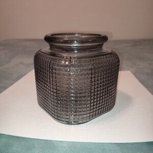 Large MCM Style Gray Glass Vase Squares Jar Vintage