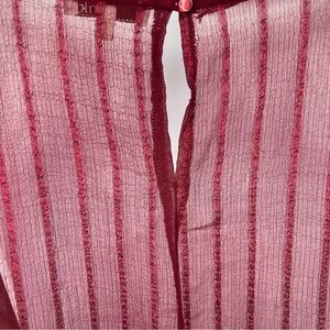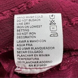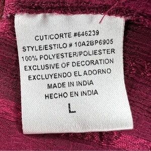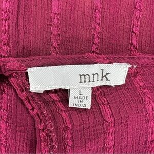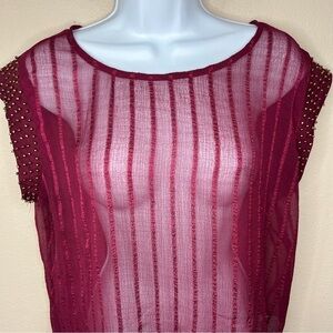 Large MNK Burgundy Red Sheer Blouse Beaded Accent Cap Sleeve Boat Neck