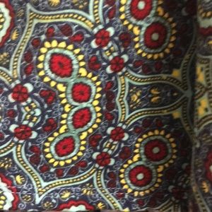 Large Madison - blue, red, yellow, aqua - geometric pattern - worn once