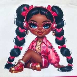 • Graphic: Hand-pressed trendy girl with pink-themed outfit and accessories