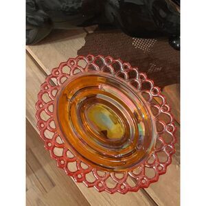 Large Marigold Carnival Glass Turkey on Nest Dish – Lace Edge Trinket Box – Moss