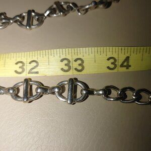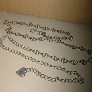 Large Marine Anchor Link Belt Vintage Silver Tone Chain Heart Pendant Hook Clasp