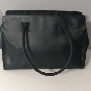 Large black Mary Kay bag with pink floral inside. Two large front pockets also with floral. Zip closure on the top. Inside features are: one very large main compartment one full size net pocket across one side the other side has two large net pockets and two other open pockets. very clean inside and out with the exception of slight wear on three of the bottom corners. ( see pic )