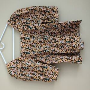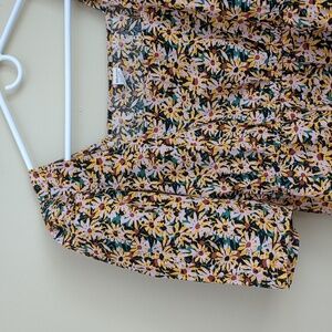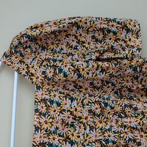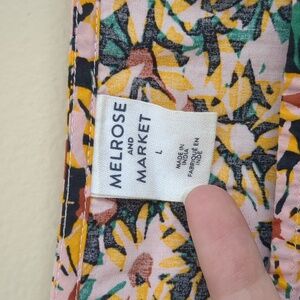 Large Melrose and Market Floral Flower Top Shirt Pink Green Black Cotton