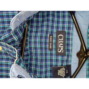 Large Mens Chaps Easy Care Blue Plaid Long Sleeve Button Up Shirt . Condition is Pre-owned - Good.