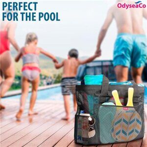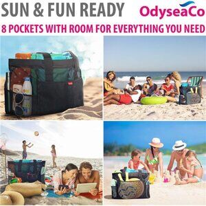 *EXTRA LARGE MESH BEACH BAG - Our oversized beach bag comes with 8 large pockets for optimum storage and 1 waterproof zippered internal pocket to keep your valuables and electronics dry. A full 18-inches in height and 29-inches long, this XL beach tote will enable you to carry all you need and more for your day ahead at the beach or pool.