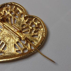 Large Metal Gold Tone Heart Brooch. Bar Pin Has A Small Bend To It But Still Functions As Intended. Cute Brooch! Check Out My Closet For Other Great Items!!! Thank You For Considering Making A Purchase.