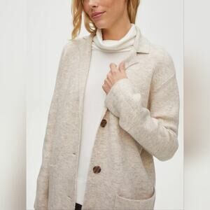 Large Michael Stars Oatmeal Knit Button Up Sweater Coat Shacket With Pockets