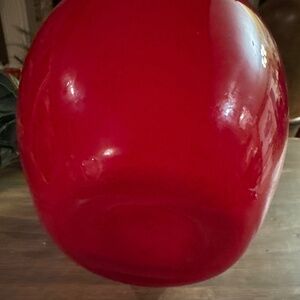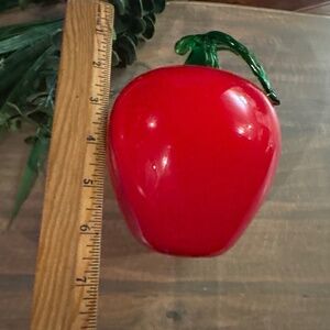 Large Mikasa Ruby Red Glass Apple Applied Green Stem 6” Tall