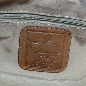 Large Mola Kuna Indian handmade bucket handbag. Features large birds on both sides in pink and green. All hand stitched. Brown leather trim and fabric lining. Inside zipper pocket, double straps.
