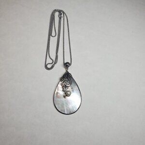 Large Mother of Pearl and Sterling Silver Pendant Necklace
