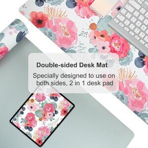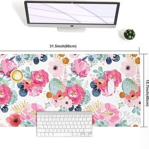 Large Mouse Pad, Pink Floral Desk Mat for Desktop, Women Girls PU Leather Waterp