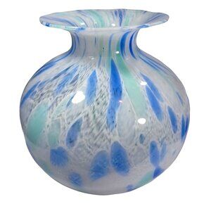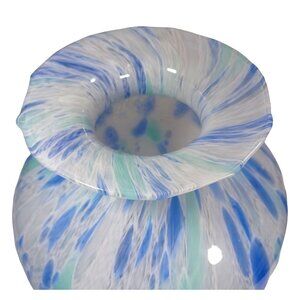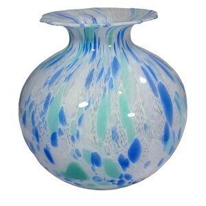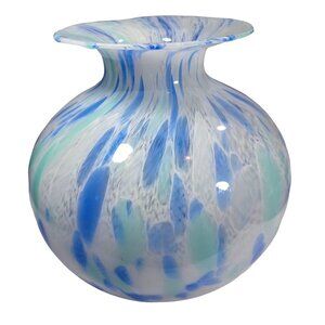 Large Murano Bulb Shaped Vase Cobalt Aqua Cornflower Blue Confetti Ocean Colors