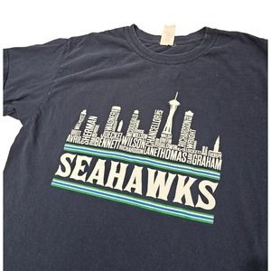 Large NFL Seattle Seahawks Skyline T Shirt Players Names Dark Blue A+