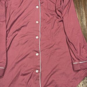 Large NINE WEST Women's Pink Button-Up Sleep Shirt
