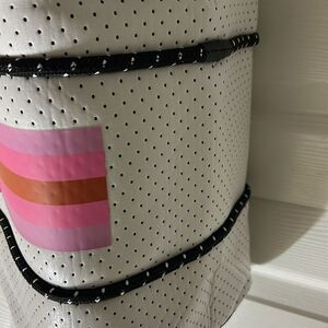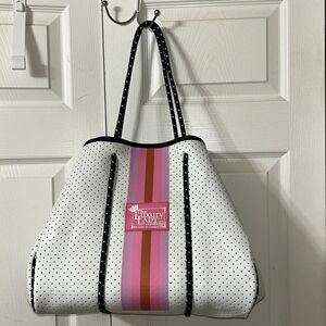 Large Neoprene Tote White, Pink & Black with Wristlet,Snap Closure..NWOT