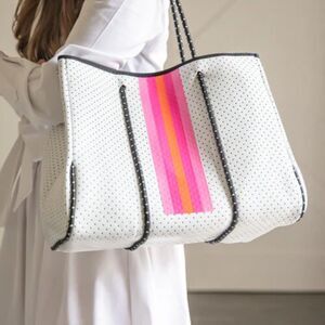 Large Neoprene Tote White,Pink & Black with Wristlet