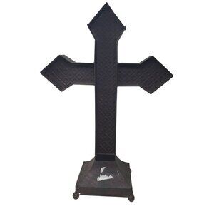 Elizabethan look to this textured metal cross. Beautiful symbol of faith.