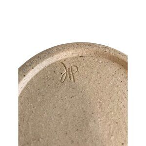 This decorative vase features a modern abstract design with vibrant orange accents, complementing its textured beige ceramic finish for a con