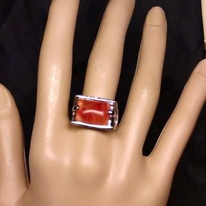 Beautifully Designed Unique Gorgeous Rare Large Orange/Red Stone Sexy Stylish Fashion Cocktail Evening Ring 7.5. It will be great for just about any special occasion, it is a must have for the fashionista. It is a well made ring. Will come in a beautiful gift bag or box. Hard to find It is new without tag. Looks way better in person, pictures does not do it justice.