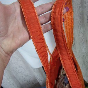 Large Orange Straw Handbag Tote Purse with Sequins NWOT