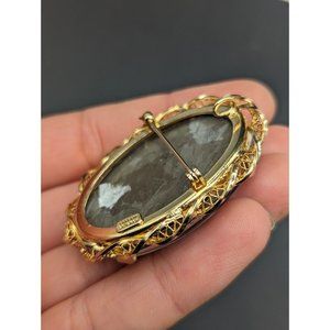 Large Oval Ammolite Triplet Fossil Gemstone Gold Filled GF Brooch Pin Pendant