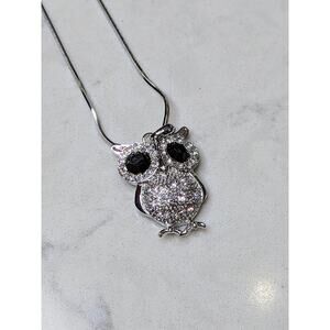 Large Owl Necklace White Gold Plated Pendant with Crystals