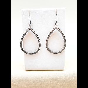 Large Oxidized White Topaz Open Tear Drop Dangle Earrings, NWT, Ships Gift Box