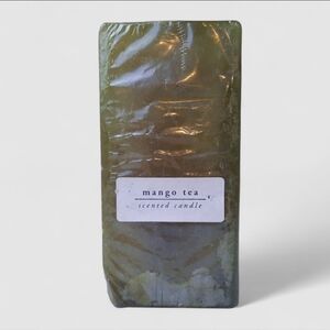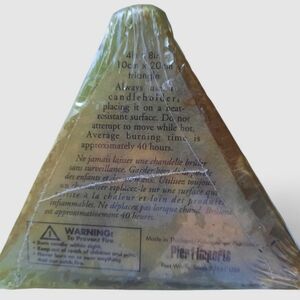 Vintage Pier 1 Mango Tea candle. The scent is very pleasant and still fragrant. Triangular and measures 4" x 8". In a sage green color. Small dent in one corner, last photo. Once opened the dent can be warmed with a hair dryer on low and molded. New with tags and sealed.