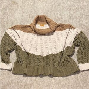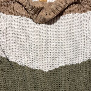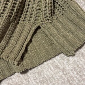 Large POL sweater chenille chunky knit cozy crop green khaki and cream JST393C