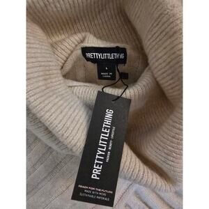 Get ready to fall in love with this PRETTYLITTLETHING beige crossover turtleneck sweater! This brand new with tags sweater is incredibly soft and cozy, perfect for chilly days.