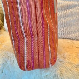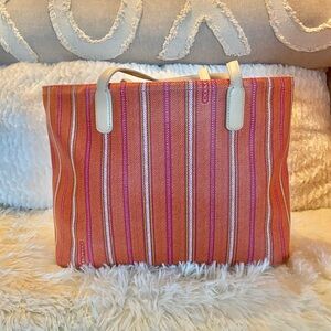 Coach Large Legacy Ticking Stripe PVC Tote. 23108. Good preowned condition. Strap wear. Zip closure. 13x10x4.5 with 9” strap.