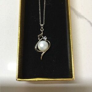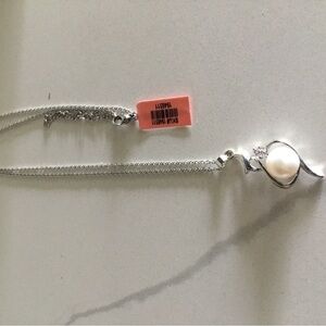 Large Pearl and CZ Pendant Necklace NEW in Gift Box