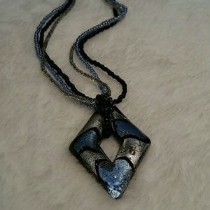Blue and black with silver pendant necklace, absolutely beautiful, new condition! 17-19 3/8" adjustable length. Made at a local boutique, and downsizing my collection! No trades or holds.