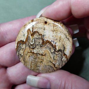 Large Picture Jasper * 48.23 x 5.73mm * Drilled Cabochon * Round Pendant Stone