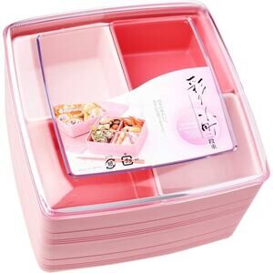 Japanese bento box with two tiers and 4 small containers, great for large lunches or to fill with snacks for picnics! The pink color would be so cute for a galentine's picnic!