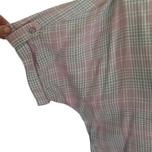 Large Pink & Gray Checkerboard Button Down V Neck Cuff Sleeve Top Gloria Van